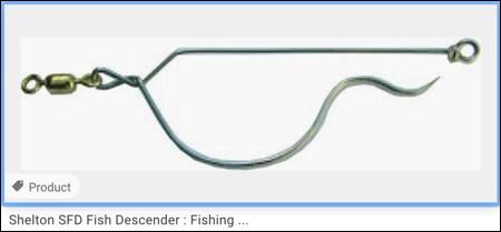The descending device attaches to the fish’s mouth or is a container that will hold the fish (for example, a milk crate with a weight).