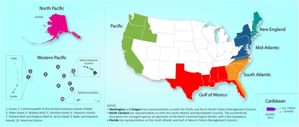 Each Council has representatives from coastal states and fishing constituents (for instance, commercial and recreational fisherfolk, charters, managers, fishery scientists, and others)