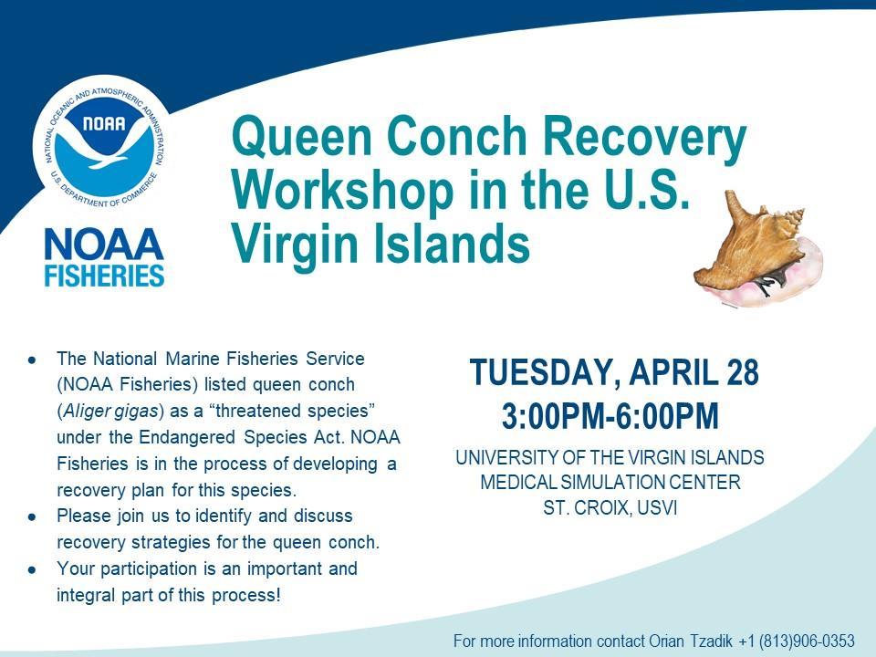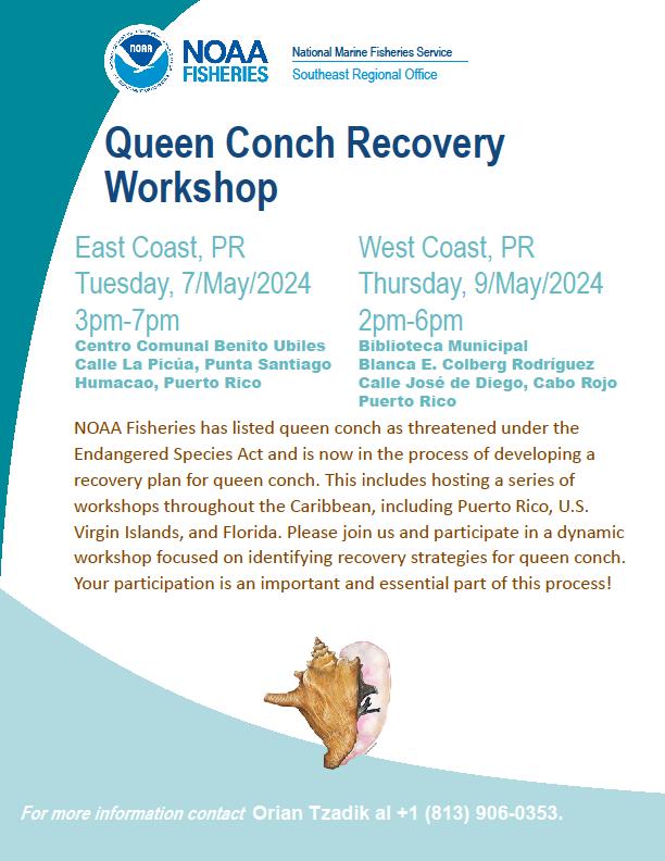 ● December 06, 2019: NOAA Fisheries announced the initiation of a status review of queen conch.