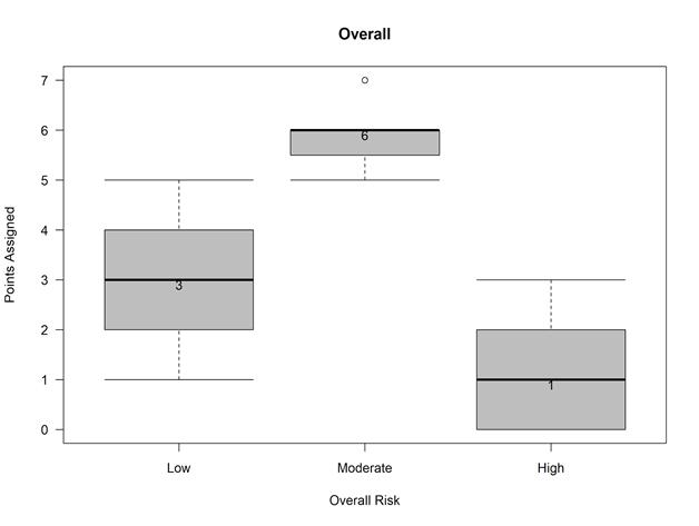 41 (59%) of points assigned to “moderate risk” by 7 SRT members.