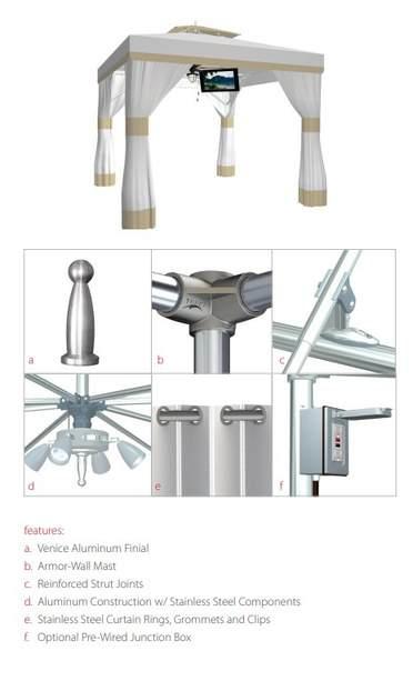 TheMontereyfiberglassmarketumbrella collectionismanufacturedusingthebest andmostresilientmaterialsavailable.The half-inchthickfiberglassribsallowthe frametobendandflexeasilyinwindyconditions,whilethedurablealuminumcenter pole,andmaintenancefreeresinand stainlesssteelpartsensurethisumbrella willprovideyearsofworry-freeshade.
