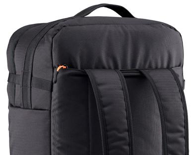 • Concealable padded Bio-form harness system allows you to carry this wheel travel pack on your back should you need to head off road