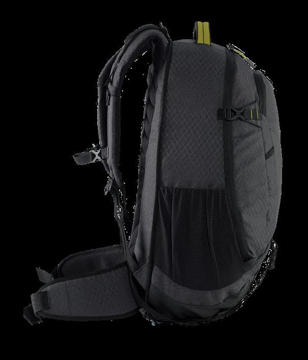 • Bio-form harness system includes padded shoulder straps, padded hip belt, sternum strap and top stabiliser straps.