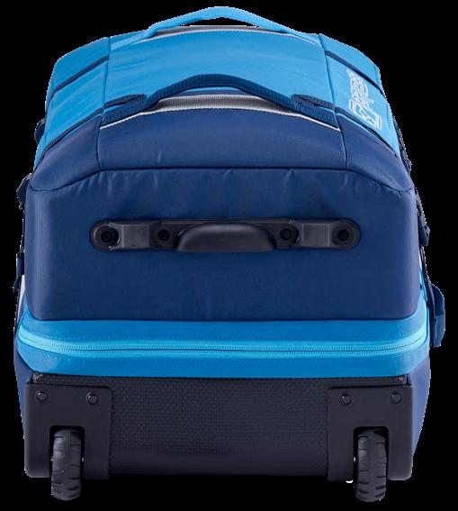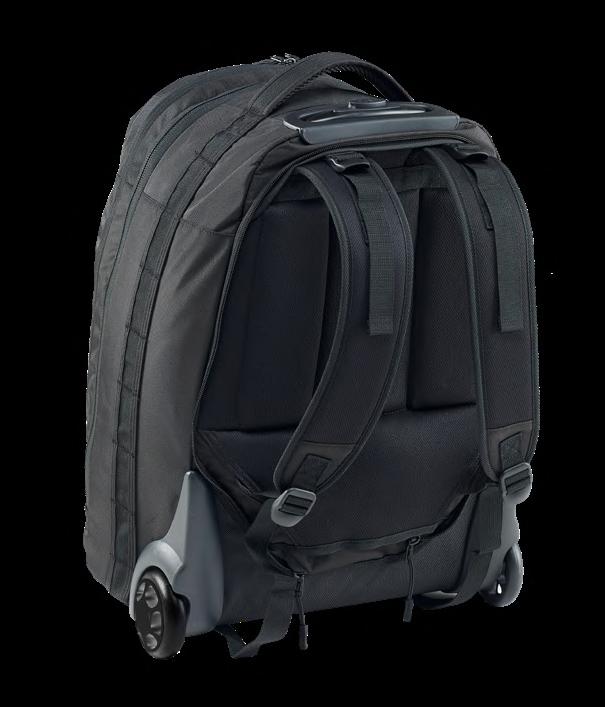 • Premium quality aluminium push button trolley system stows neatly in the top of the pack.