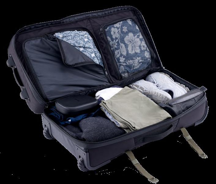 • Separate base zippered shoe pocket keeps your shoes away from your travel gear.