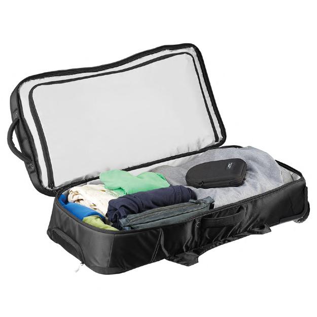 • Hybrid 70L wheel travel bag design with concealable backpack harness system