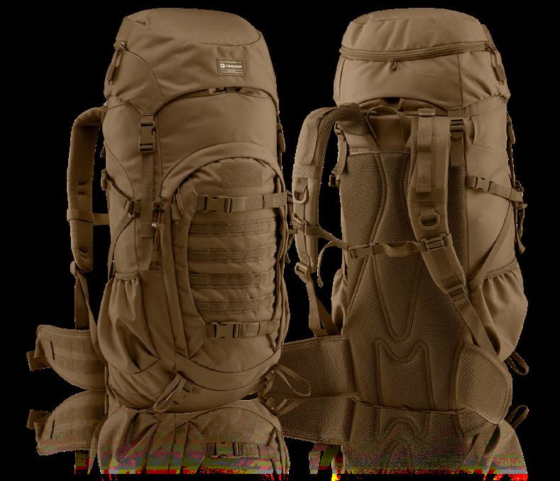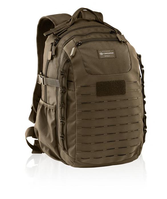 • Concealable backpack harness system with padded shoulder straps and hip belt