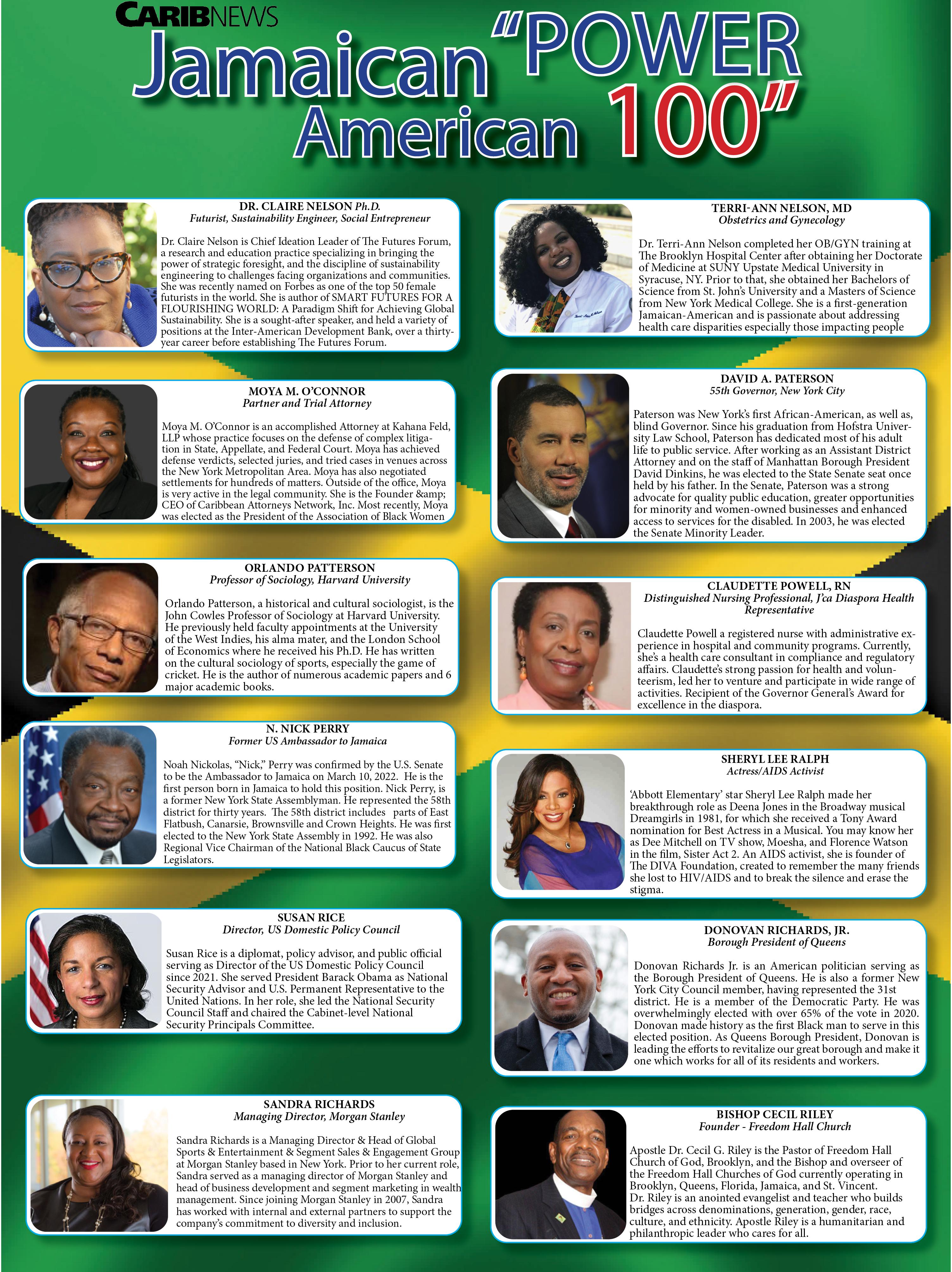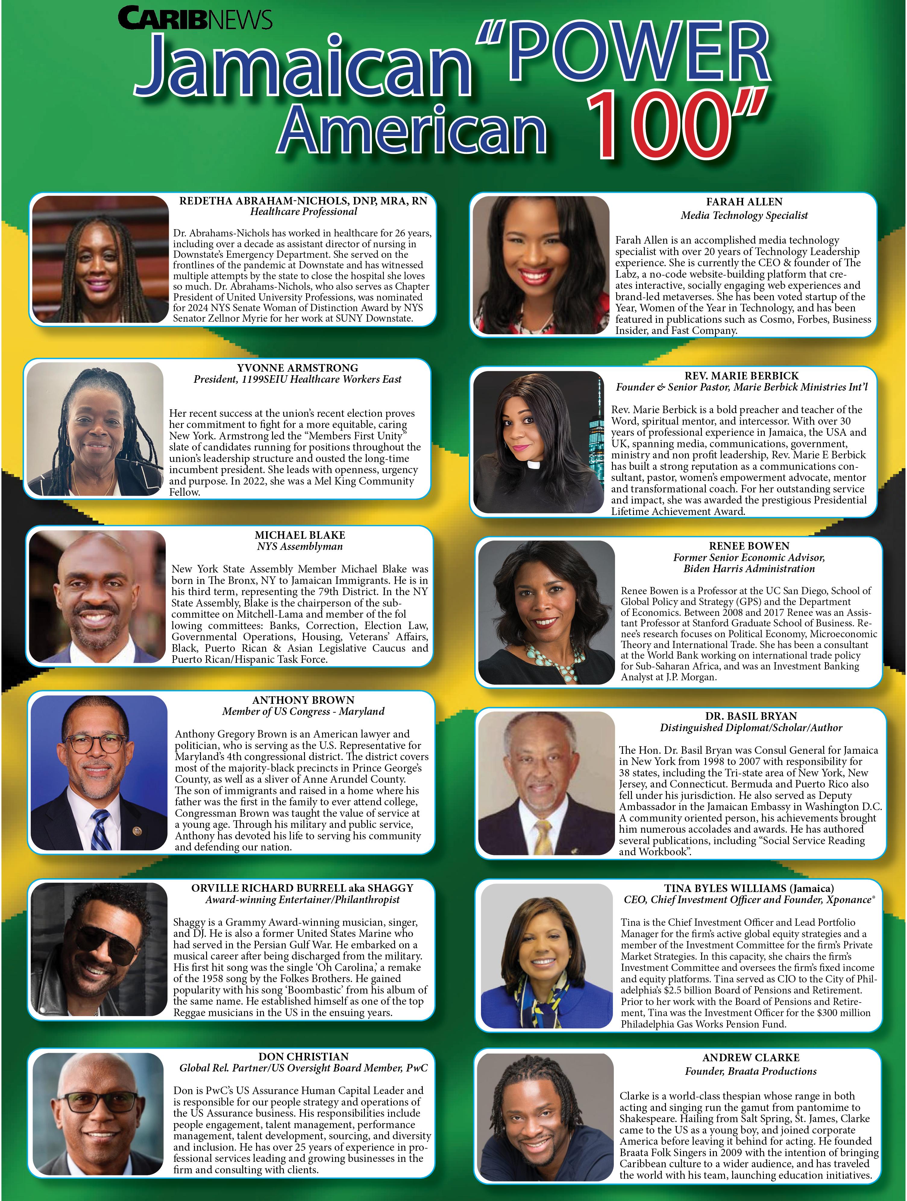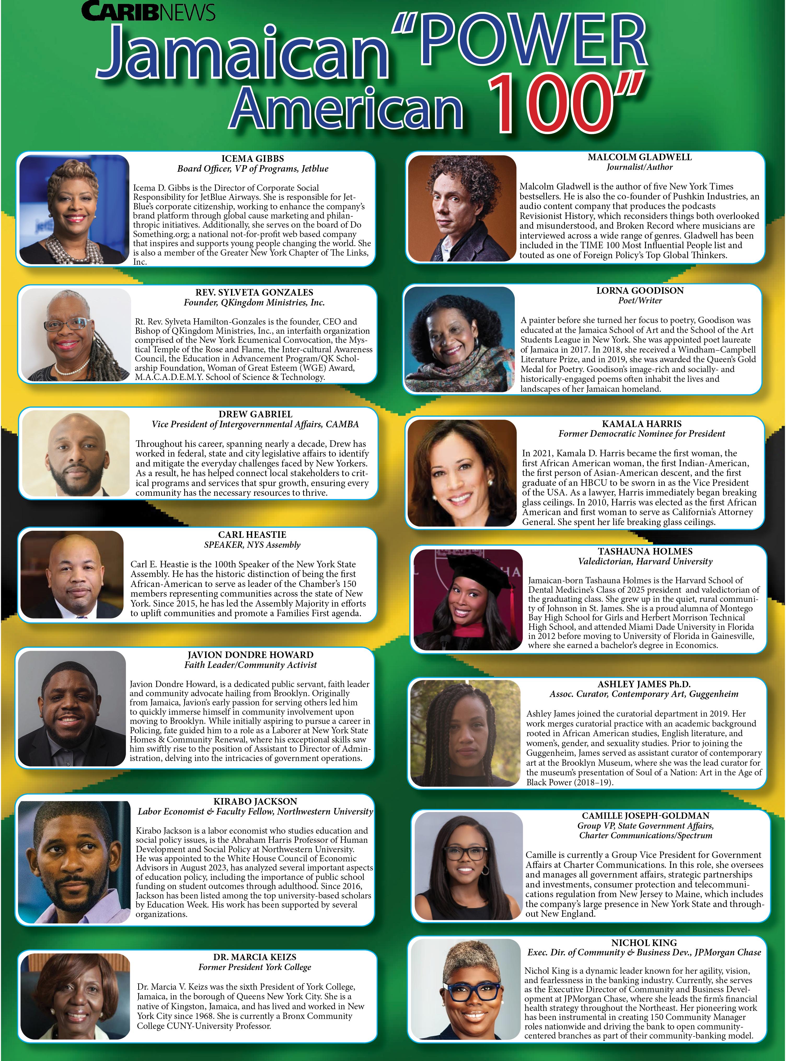 This year’s Carib News “Power 100” honorees stand as a testament to the impact of Jamaicans and JamaicanAmericans across the globe. From corporate boardrooms to Broadway stages, from scientific laboratories to Olympic stadiums, they are not just achieving personal success — they are carrying Brand Jamaica into every corner of the world.