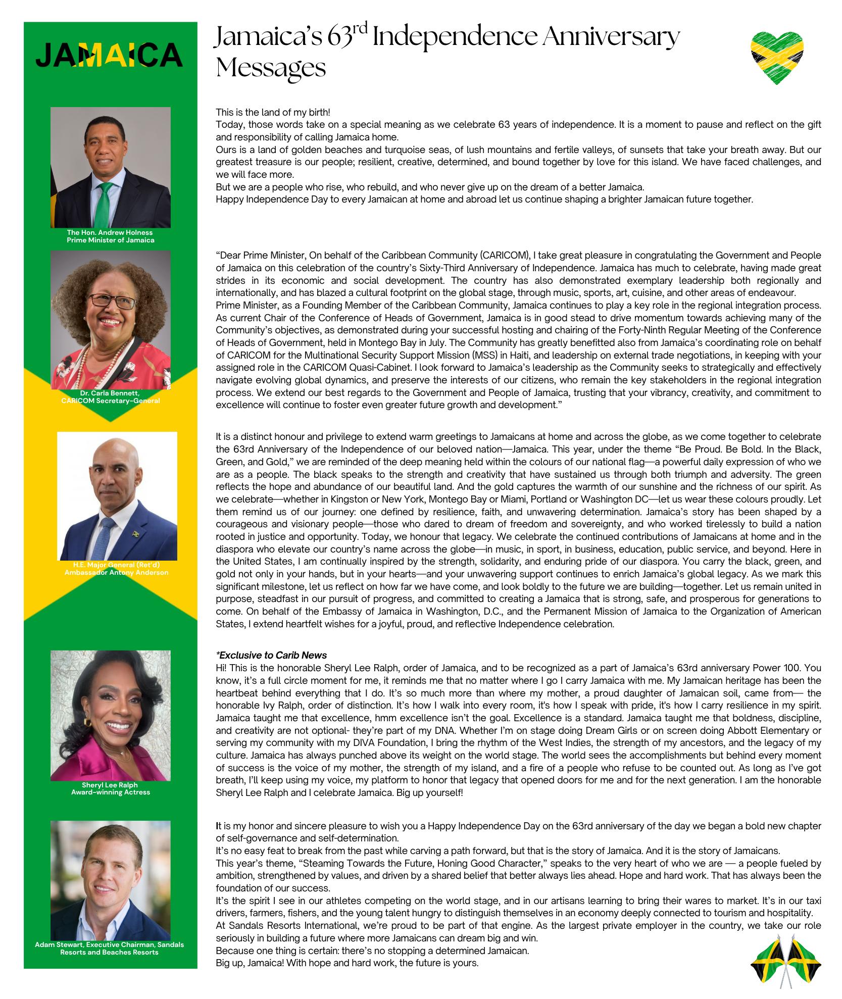 As we mark 63 years of independence, Jamaica stands at a crossroads — proud of what has been achieved, aware of what remains to be done, and confident in the capacity of its people to lead the way forward.