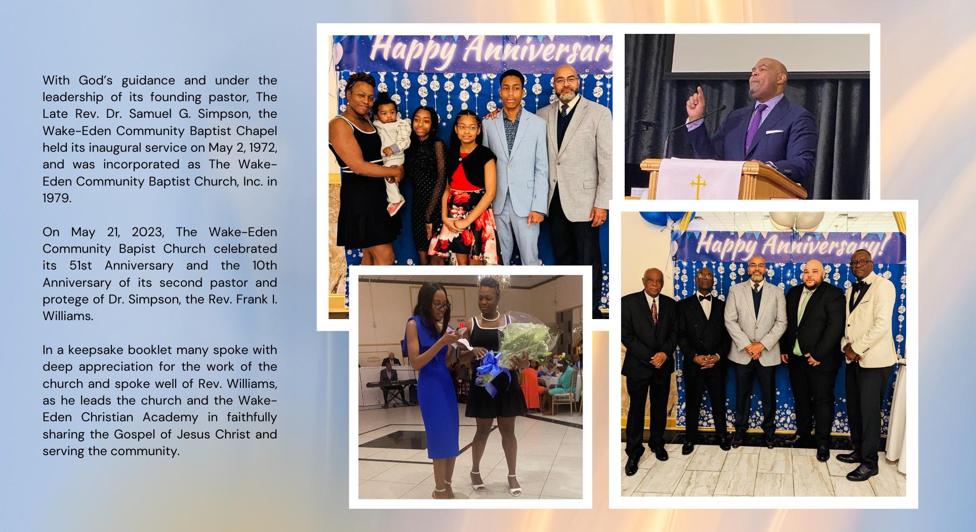 51st Anniversary of Wake-Eden Community Baptist Church and 10th Anniversary for Rev. Frank Williams and Lady Tisha Williams, as Senior Pastor and First Lady