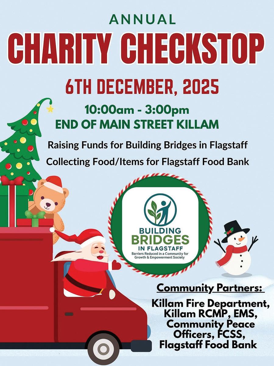 Add your name with a Minimum cash or donation in Killam or mail donation to: Box 178, Killam, AB T0B 2L0. Cheque payable to Flagstaff Christmas Sharing! Cash or Cheque only. Stop by The Community Press in Killam or donation to: Box 178, Killam, AB T0B 2L0. Cheque payable to Flagstaff Christmas Sharing!