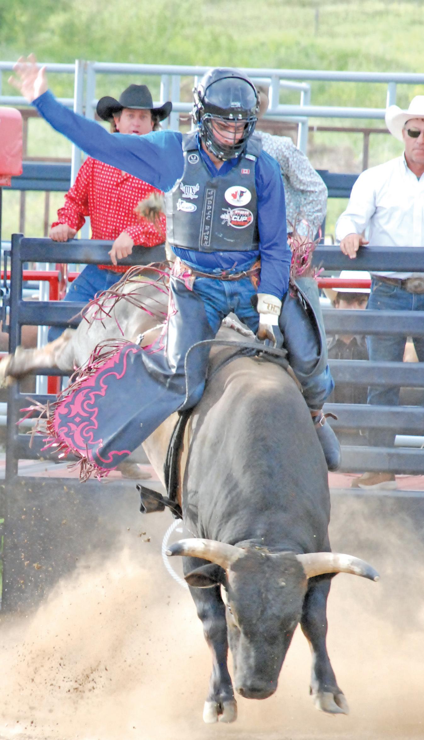 The dust flew and the bulls bucked at Kinsella’s 26th Annual Gravel Dome Bullarama, held Wednesday evening, July 9, as rodeo fans packed the stands for a thrilling night of professional bull riding action. With a full card of 16 rides and 11 fearless riders, some with double entries, the crowd was treated to an intense display of athleticism, grit, and determination. The Kinsella Recreation and Agricultural Society once again hosted a top-tier event that brought some of the best in the sport to town with competitors from the Professional Bull Riders of Canada (PBR).
