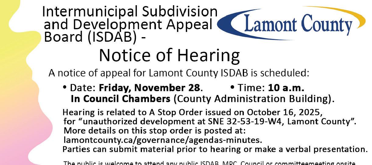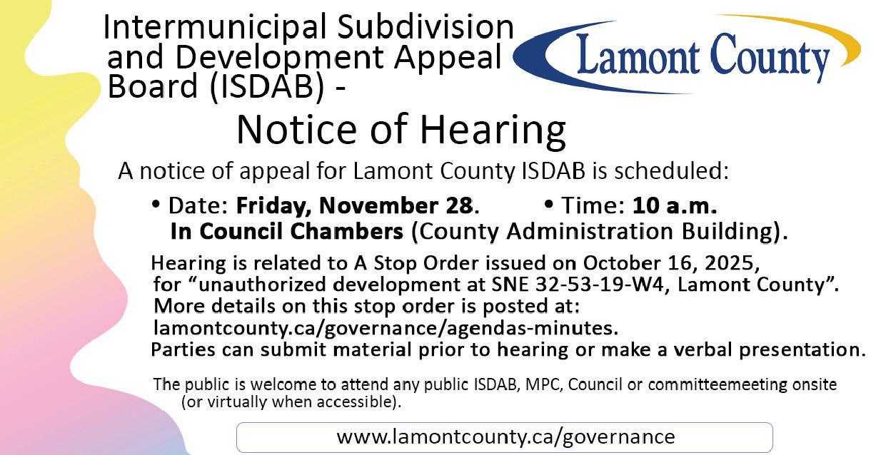 Next Regular Council Meeting: Tuesday, Nov. 25 | Next ASB meeting: Wednesday Dec. 10 lamontcounty.ca/governance/agendas-minutes | lamontcounty.ca/agendas-minutes-asb