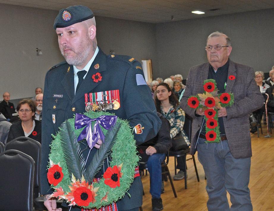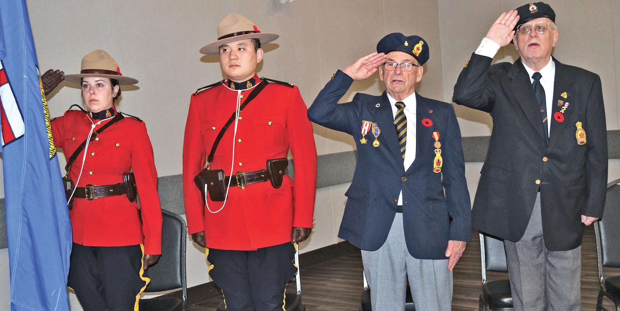 RCMP and the Viking Legion also formed a Colour Party for the ceremony. Legion Poster, Poetry and Essay Awards were presented to students and wreaths were laid in honour of the war dead.