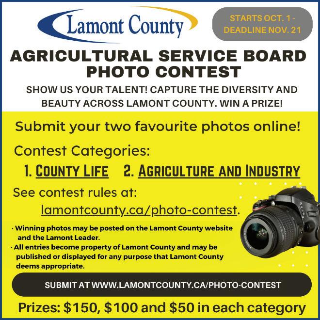 ASB’s annual Photo Contest: Submit photos at lamontcounty.ca/photo-contest (Deadline to submit is November 21). See lamontcounty.ca/news for news posts/updates, including road closures and important updates. Do you have a business within Lamont County and want to be included in the digital Business Directory? Complete your free application at lamontcountynow.ca/business-directory. Local businesses operating within Lamont County, including those with a Lamont County Business License, are added to the directory once approved. If you have any questions, contact Economic Development at 780-895-2233. You can also purchase a Business License for Lamont County (by Jan 31 for 2026)lamontcounty.ca/departments/planning-development/business-licence