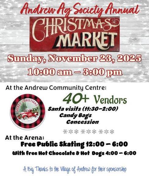 St. Michael Community & District Ag. Society – Christmas in the County Craft Sale & Market at St. Michael Hall on Nov.15 from 10 a.m. to 4 p.m.