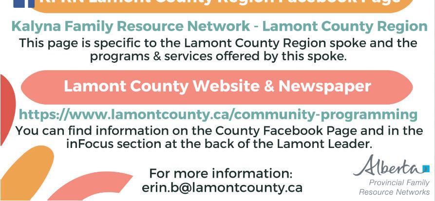 Please Note – inFocus is also accessible online at: lamontcounty.ca/communications (for those wanting to view the weekly submission as full-sized PDF &to access hyperlinks).