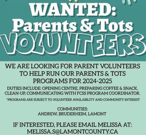 2. Parents and Tots – VOLUNTEERS NEEDED! (contact Melissa.S@lamontcounty.ca for more information and to volunteer).