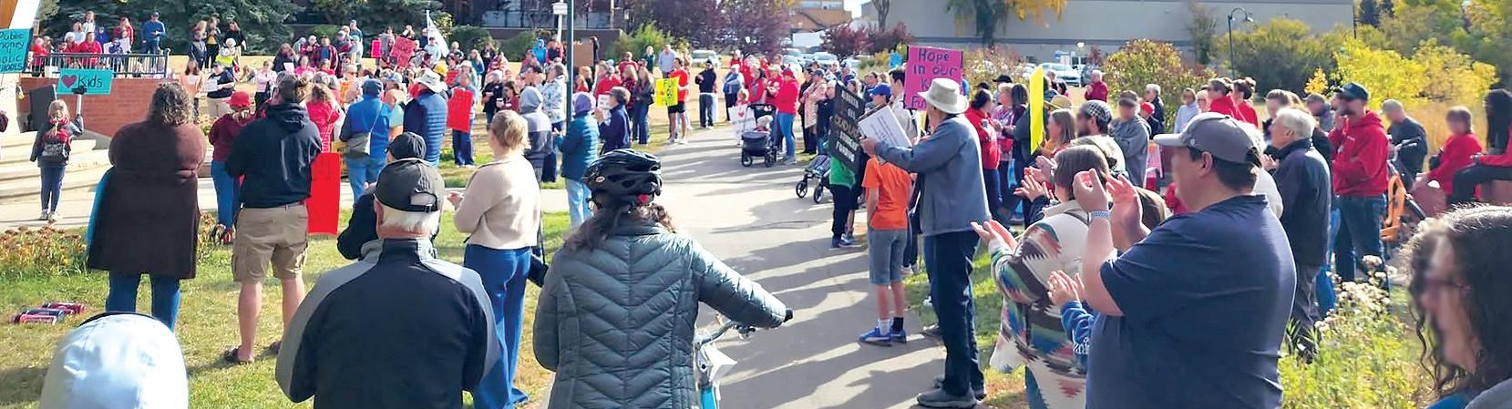 Closer to home, a rally was held in Camrose, on Sunday, Oct. 4, as well, at the Mirror Lake Gazebo, with support from local United Nurses Association members. That rally attracted a few hundred people, who showed up wearing red and waving signs of support for the striking teachers.