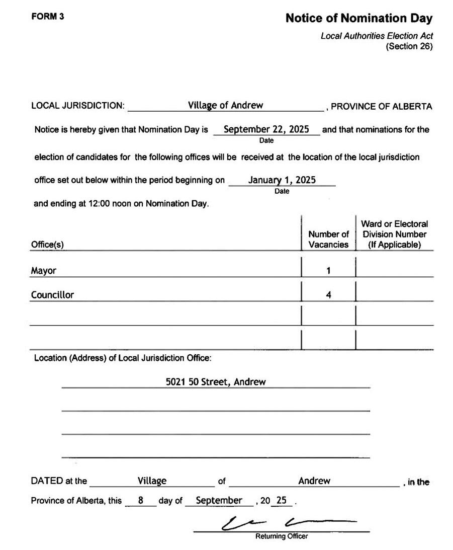Confirm you are registered to vote in the 2025 Municipal Election at voterlink.ab.ca. Exercise your right to VOTE on October 20 in your Division (or in the advance polls). Also, candidate nomination deadline is Sept. 22 at noon.