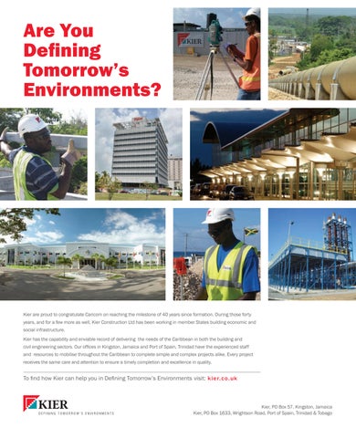 Kier are proud to congratulate Caricom on reaching the milestone of 40 years since formation. During those forty years, and for a few more as well, Kier Construction Ltd has been working in member States building economic and social infrastructure. Kier has the capability and enviable record of delivering the needs of the Caribbean in both the building and civil engineering sectors. Our offices in Kingston, Jamaica and Port of Spain, Trinidad have the experienced staff and resources to mobilise throughout the Caribbean to complete simple and complex projects alike. Every project receives the same care and attention to ensure a timely completion and excellence in quality.