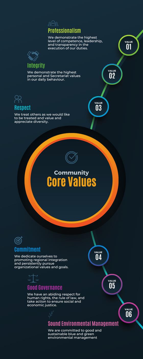 The roles and responsibilities of the Secretary-General and the Secretariat are laid out in Article 23 -25 of the RTC. During the period of this Strategic Plan, the Secretariat will be guided by its Strategic Outcome - A Viable, Sustainable, and Prosperous Community for All. The Secretariat undertakes to deliver results that make a difference in the lives of the citizens of the Community.