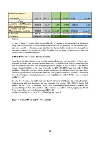 marijuana possession Total Benefit Costs Additional cost of Marijuana abuse treatment requests Additional costs from Marijuana related accidents Total Costs Net Benefit Grenada