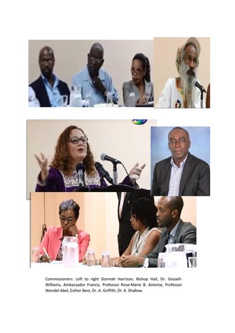 Commissioners: Left to right Dormah Harrison, Bishop Hall, Dr. GossellWilliams, Ambassador Francis, Professor Rose-Marie B. Antoine, Professor Wendel Abel, Esther Best, Dr. A. Griffith, Dr. K. Shallow.