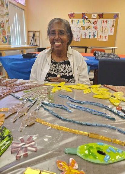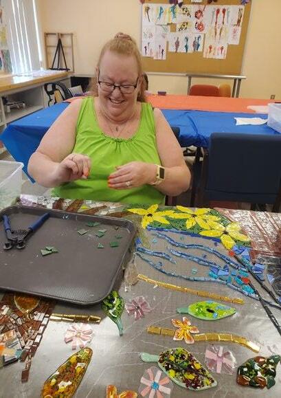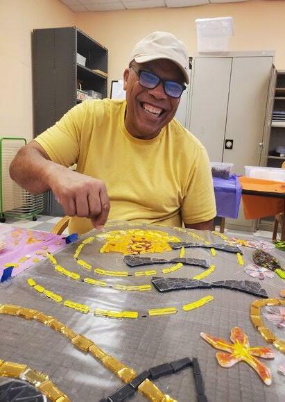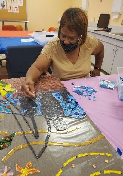 • Participants learned fused glass and mosaic techniques by creating smaller elements that were integrated into the larger mosaic mural.