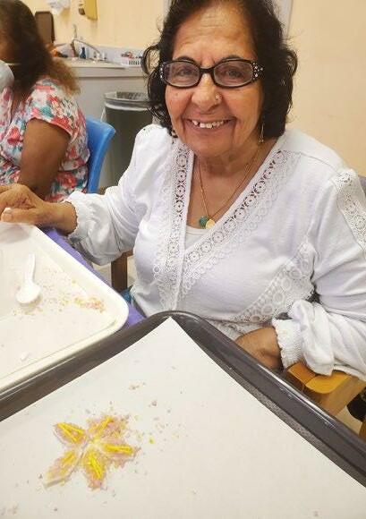 Fifteen Creative Aging Project participants worked through the creative process to design and create a 20 SF mosaic mural entitled “As Life Flows” that will be permanently installed at the Damascus Senior Center in Montgomery County, Maryland. The collaborative creative process involved participants in all aspects of the mural making project from concept and design to construction, gluing and grouting. Students learned and mastered fused glass and mosaic techniques through a scaffolded process as they problem-solved, worked as a team and collectively made artistic decisions to create a permanent collaborative mural that leaves behind a visual legacy.