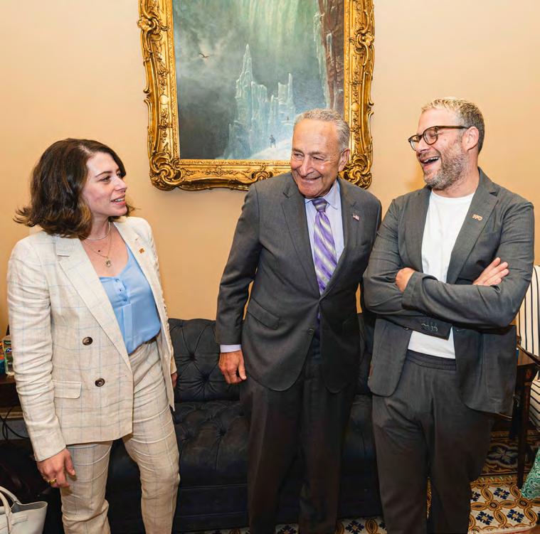 And the momentum behind the Care Can’t Wait agenda continues to build. Less than six weeks after the IRA passed, Caring Across partnered with Hilarity for Charity (HFC) to send advocates Seth Rogen, Lauren Miller Rogen and Sarah Rafferty to the White House and Congress, where they met with Second Gentleman Doug Emhoff, Senator Bob Casey and Senator Schumer.