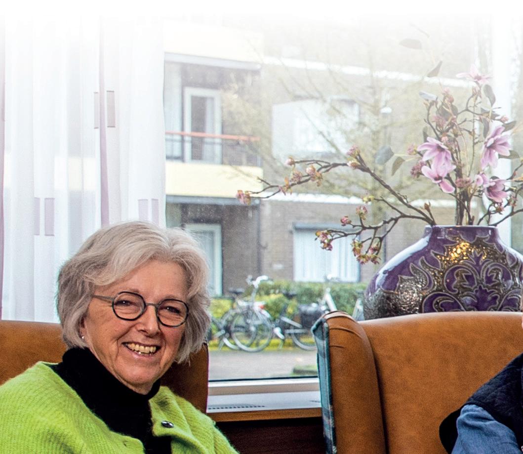 Zorg, veiligheid en vrijheid Tweeënhalf jaar geleden verhuisde Rikie met haar man naar haar huidige woning in een appartementencomplex voor 55-plussers. “Dat moest wel. Het lukte niet meer om trappen te