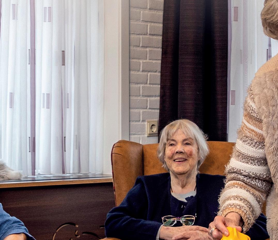 “Kopje koffie?” Vraagt Rikie van der Waarde (84). “Zal ik het inschenken? Of doe jij dat?” Ze kijkt met een schuin oog naar verpleegkundige Maike de Vries en lacht. Maike knikt en kijkt vriendelijk de tafel rond. “Doe ik wel even,” zegt ze.
