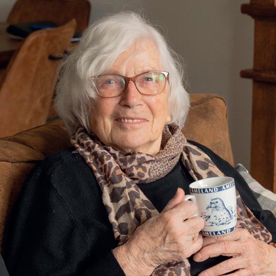 zZo gaat dat. Samenwerken. Als Maike de koffiekopjes, met ‘Ameland’ er op, op tafel zet, legt ze uit: “We nemen niets uit handen wat iemand zelf kan. Nou ja, een kopje koffie inschenken kan wel, haha. We proberen cliënten te helpen met de dagelijkse dingen, waar nodig. We zijn minder gericht op