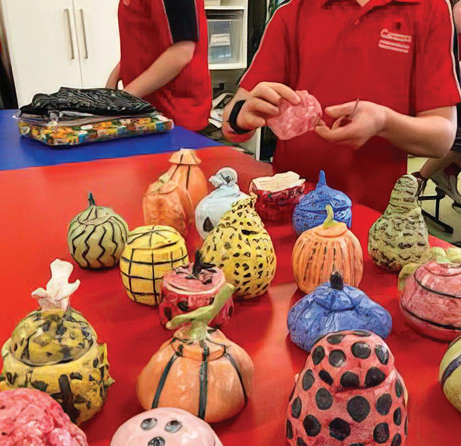 In Year 8 for the second half of the year we were looking at the unit Objects, Places and Spaces. As part of this process, students had to transform a shoe into a surprising Surreal object. We also nished the year looking at Yayoi Kusama and ceramics. We made our own versions of fruits and vegetables, with vibrant colours and patterns as decoration.
