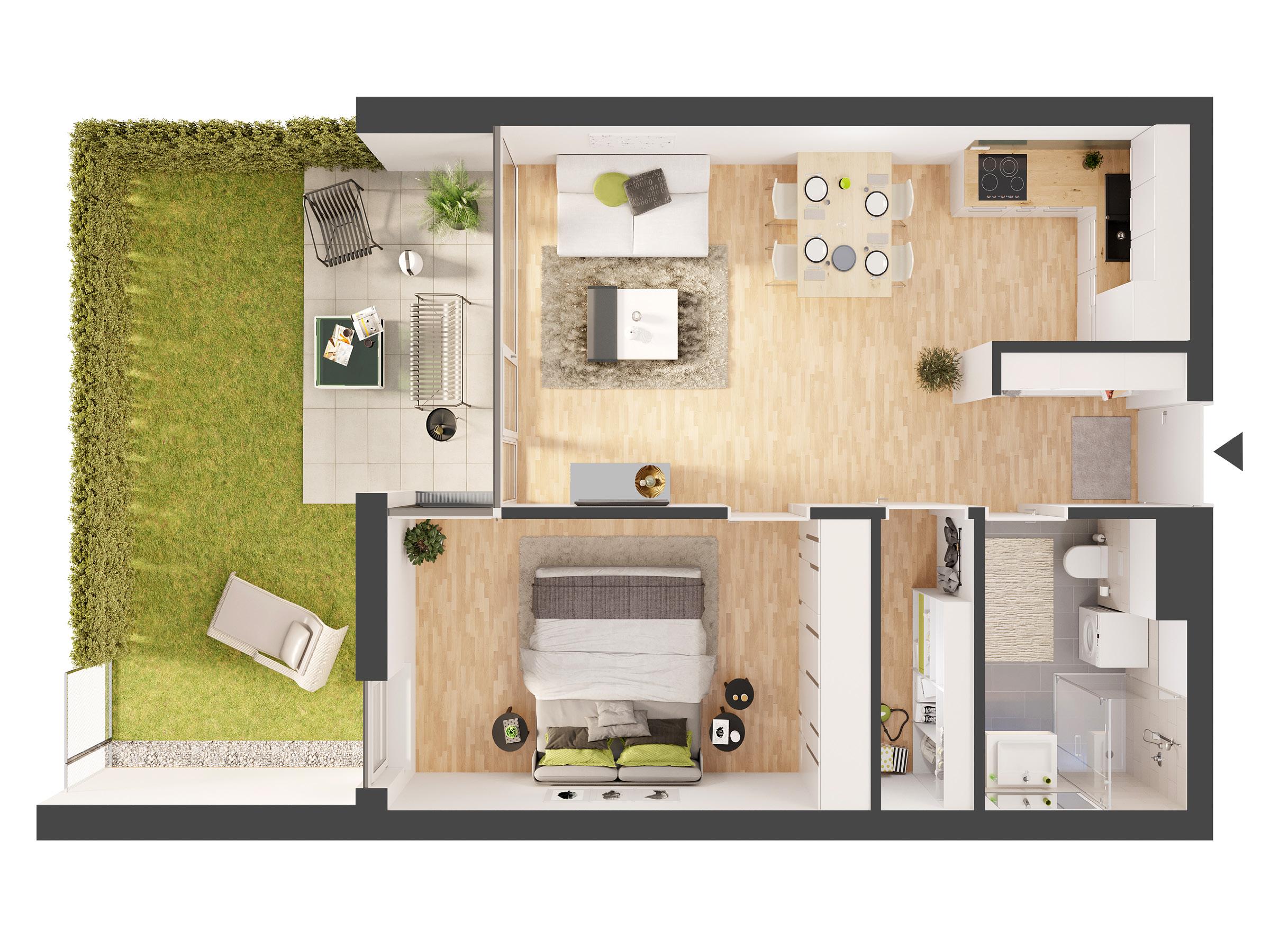 Die meisten Wohnungen verfügen über Balkone, Terrassen oder großzügige Gärten. Selbstverständlich gibt es für alle der insgesamt 36 Wohneinheiten ein eigenes Kellerabteil und ausreichend viele Tiefgaragenstellplätze inkl. Vorbereitung auf E-Mobilität.