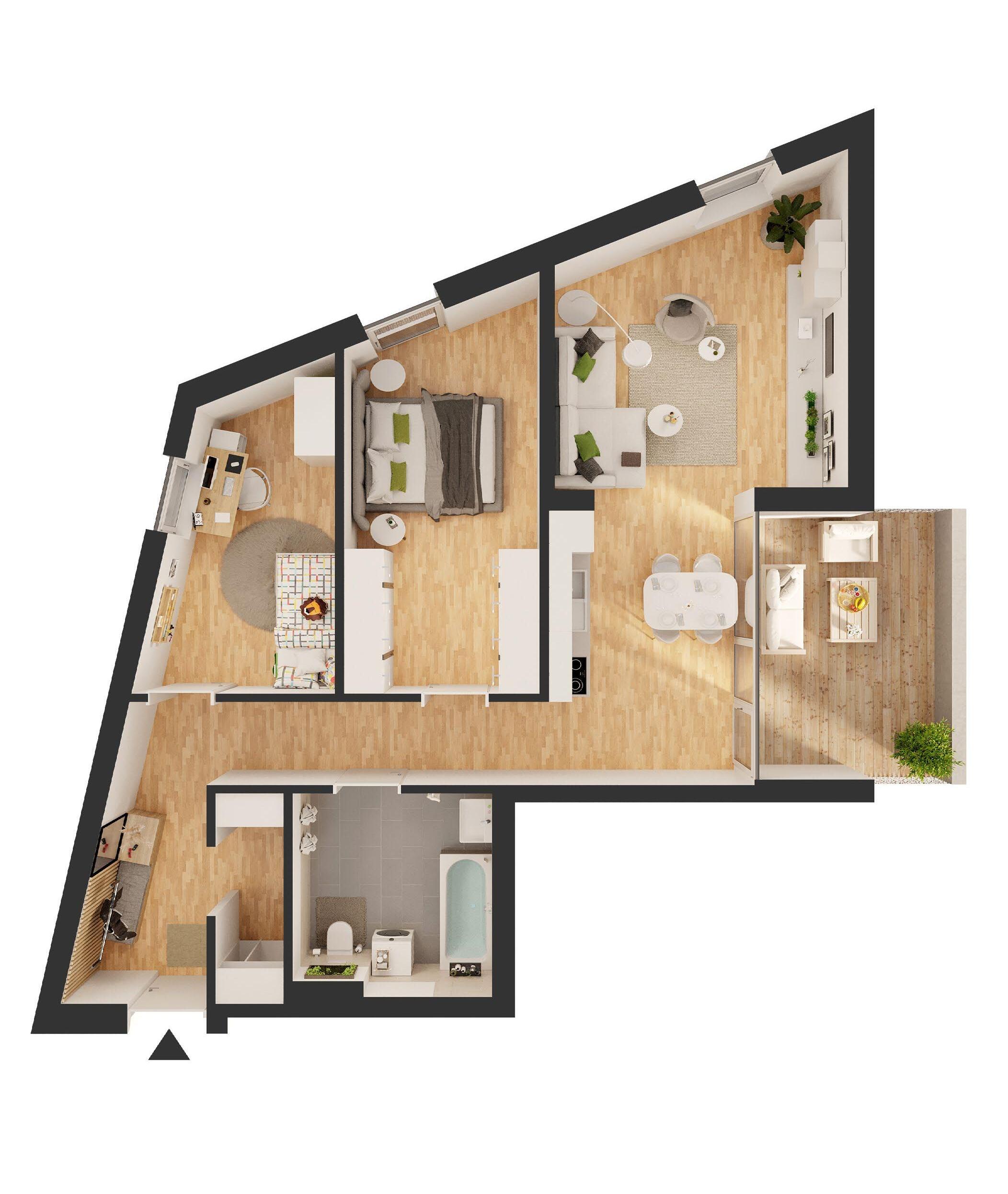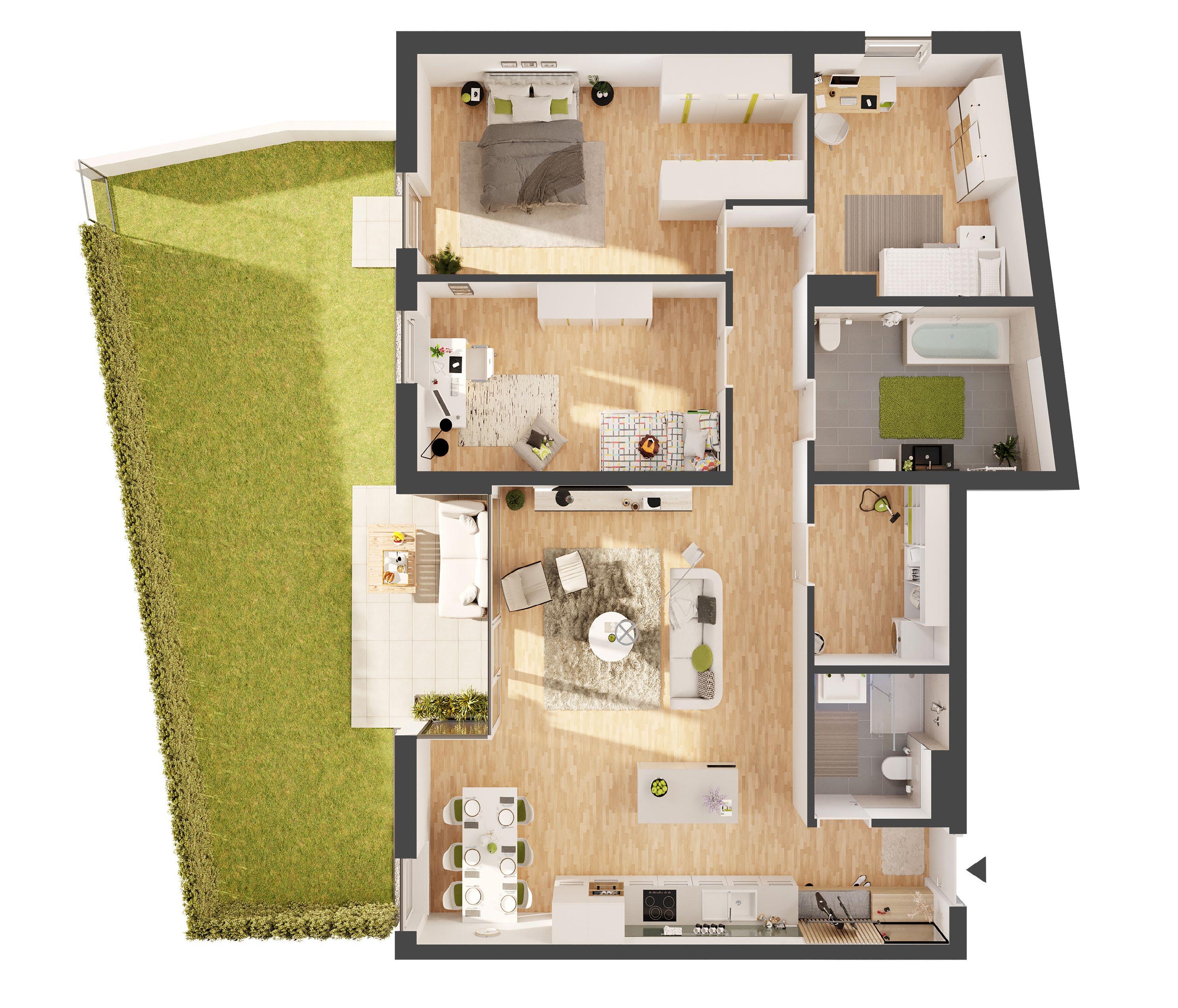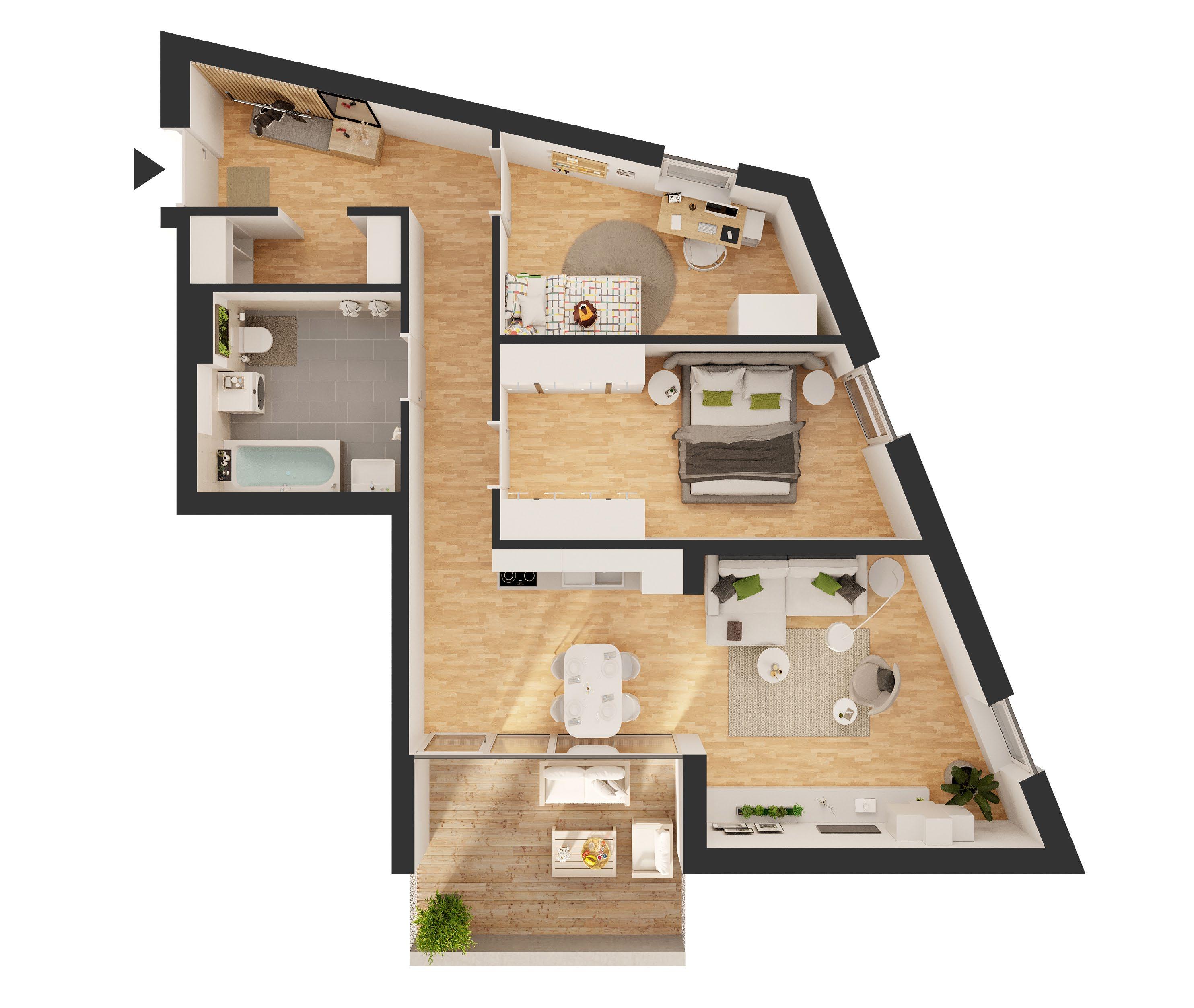 Ihr neues Zuhause verfügt über eine gehobene Standardausstattung. Sie reicht von den warmen Echtholzfußböden in den Wohnräumen über großformatige Feinsteinzeugfliesen bis hin zur hochwertigen Sanitärausstattung.