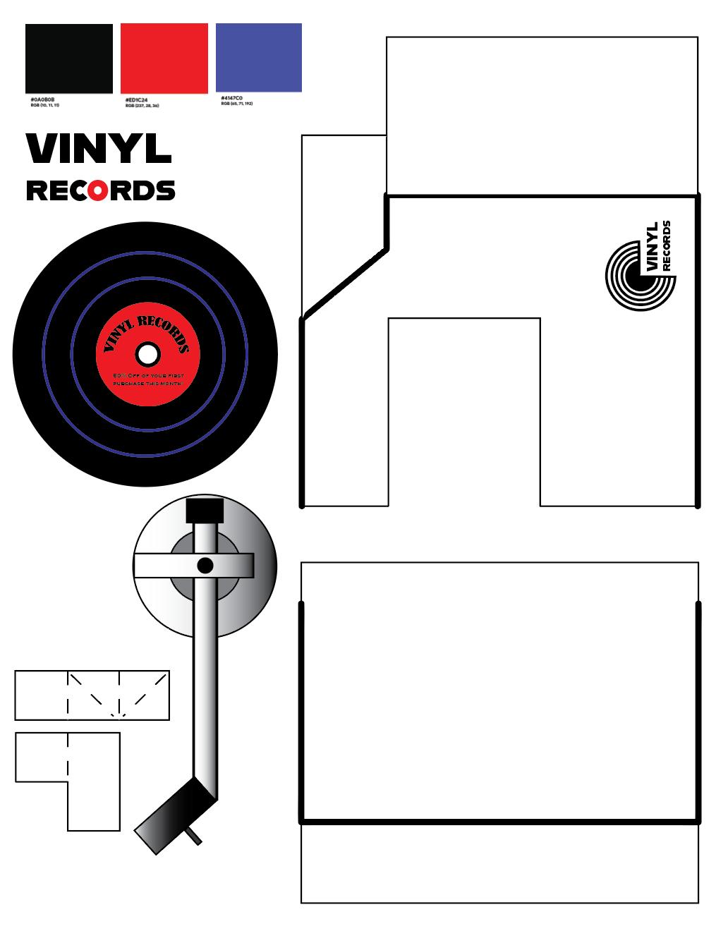 This assignment includes the designs of a pop-out turntable meant to promote the opening of a new record shop.
