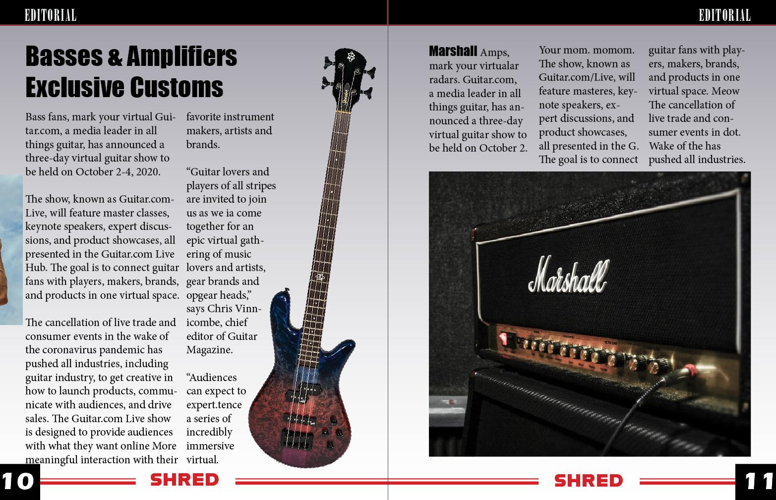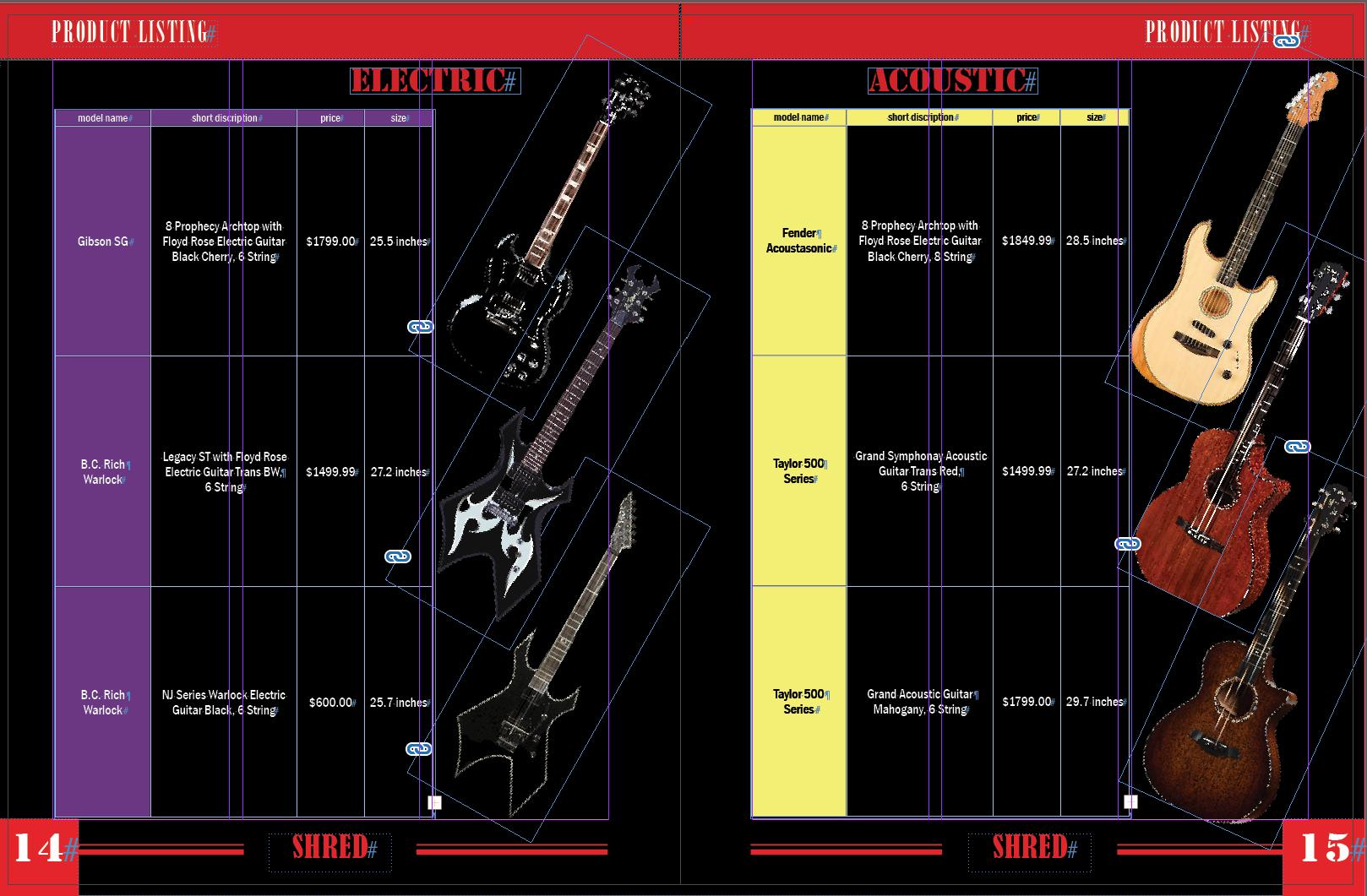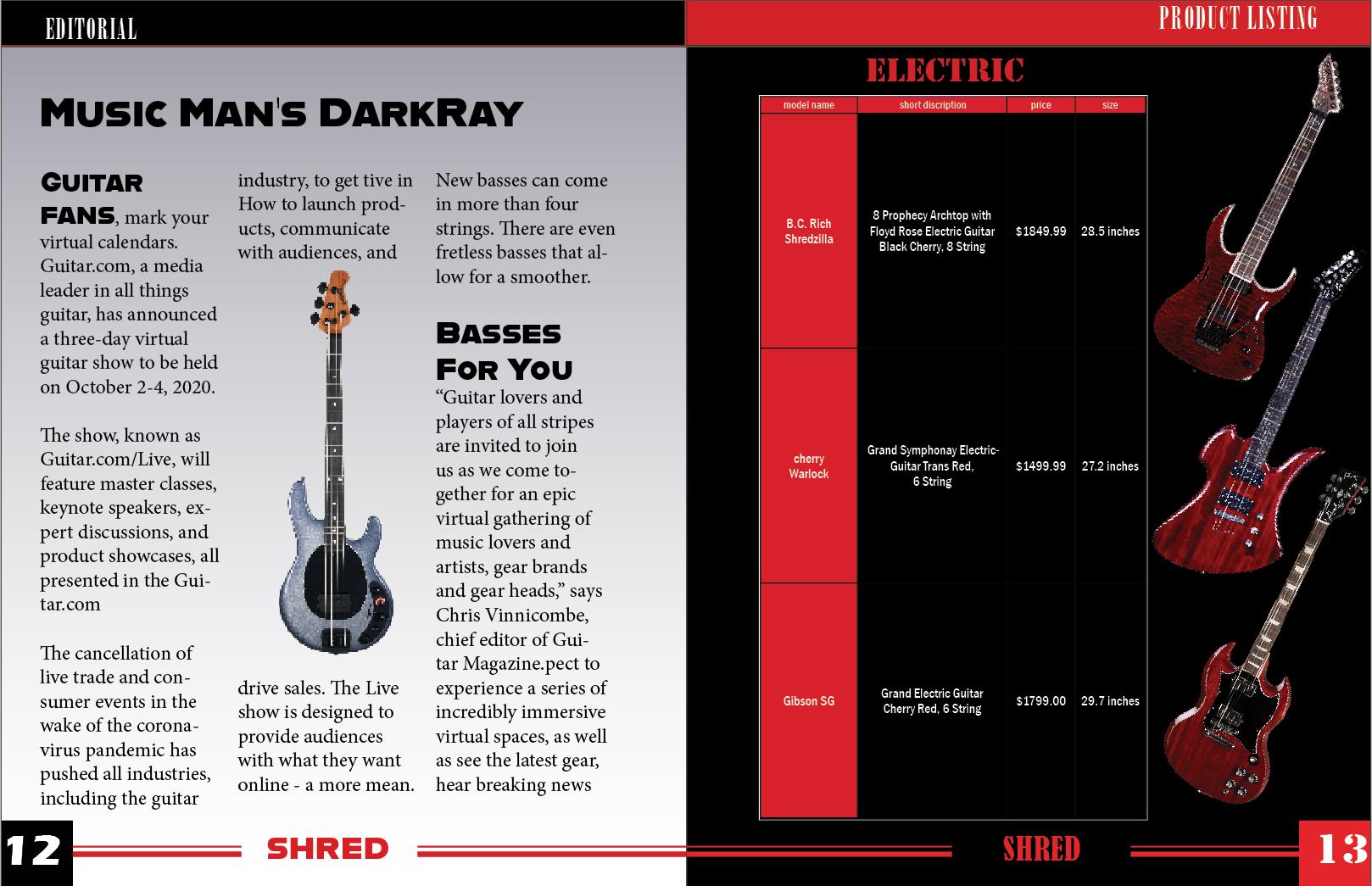 This Catalog titled, “SHRED”, contains product listing and editorial pages surronding the focus of Electric Guitars and Basses.