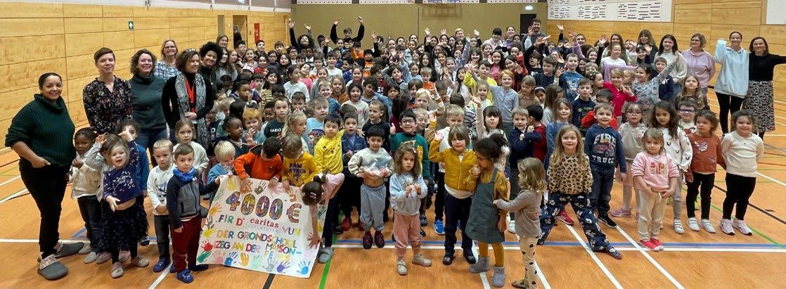 Les enfants de l'école fondamentale d'Itzig ont fait don de 4.000 € au profit des personnes réfugiées suivies par Caritas Luxembourg et des épiceries sociales « Caritas Buttek ».