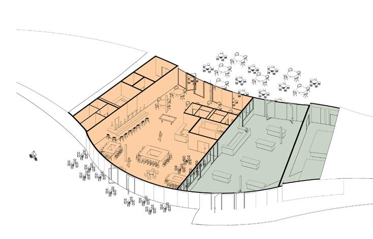 Musique Restaurant/Bar Axonométrie du projet de l’école de Musique Plan Masse du projet de l’École de Musique Points de vue des perspectives