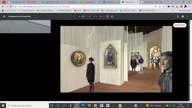 E l h o s p i c i o d e l o s I n o c e n t e s f u e u n a e d i f i c a c i ó n d e l a r q u i t e c t o F i l i p p o B r u n e l l e s c h i e n I t a l i a E s t e s i g u e u n a t i p o l o g í a d e p a l a c i o / i g l e s i a / p l a z a y f u n c i o n ó c o m o u n o r f a n a t o g r a c i a s a u n p r o g r a m a q u e b u s c a b a l a m e j o r a d e s u p o b l a c i ó n e n l o s s e c t o r e s d e a t e n c i ó n s o c i a l y s a l u d S e g ú n L e l a n d R o t h , e n u n o d e s u s l i b r o s , e s t e f u e e l p r i m e r e d i f i c i o e n q u e e l a r q u i t e c t o p u s o e n p r á c t i c a l a a r m o n í a m a t e m á t i c a