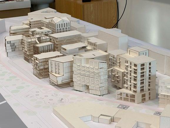 This new district is mainly for housing. The pink ones are mixed functions that can provide cafes or bakeries. The green one is for public activities only like an open space, a dance studio and some restaurants.