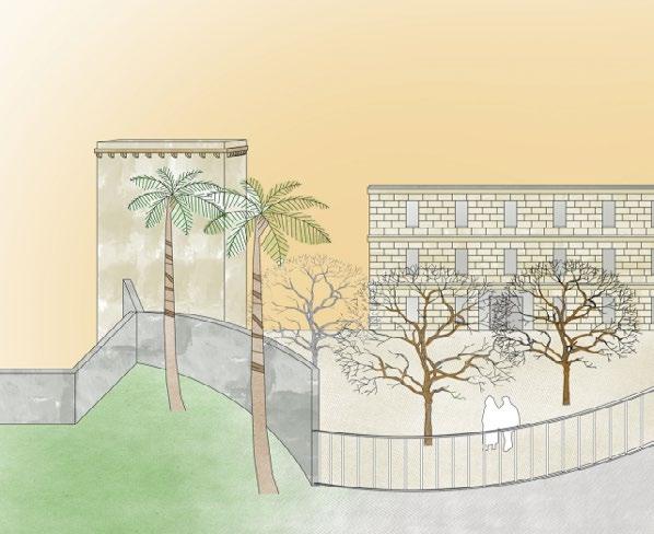 Au début de semestre, nous avons réalisé une enquête sur les polémiques dans le quartier des Catalans dont nous avons constaté un manque d’espace public, comme cette plage très prisée par exemple. L’idée est donc de créer une place publique, ici placée en contre bas de la rue mais surplombant la plage.