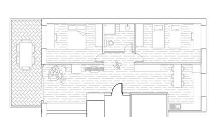 Le rez-de-chaussée est public la journée, pour offrir une porosité à ce bloc. Il se veut un lieu de connexion avec suffisamment d’espace pour créer des interactions humaines. Chaque appartement se base sur la déclinaison d’un T3 traversant qui se divise en deux dans la longueur avec une trame séjour et une trame nuit comme montré ci-dessous. Chacun possède une cuisine et salle à manger qui s’ouvrent sur la terrasse. J’ai évité les ouvertures orientation nord ouest pour parer au mistral. Cette terrasse permet alors une double orientation, en ouvrant les chambres face sud ouest, ce qui les protègent du vent et des nuisances sonores de la route.