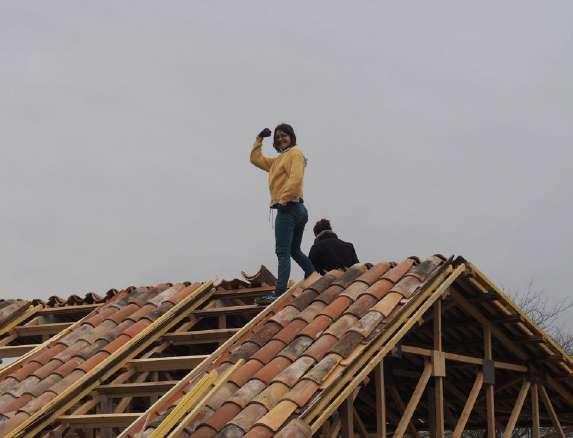 PAUSE DE LA CHARPENTE EN BOIS DE RÉCUPÉRATION