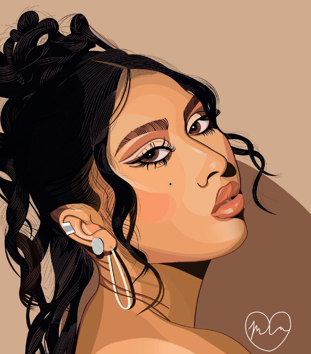 Es una joven diseñadora grafica que anhela convertirse en ilustradora digital. El trabajo presentado fue realizado en photoshop a base de pinceles y trazos hechos en illustrator.