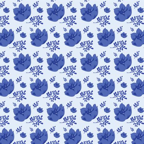 Patrón principal de la colección y tres patrones secundarios. Aplicaciones gráficas de diseños creados en la colección en productos para baño y tocador.