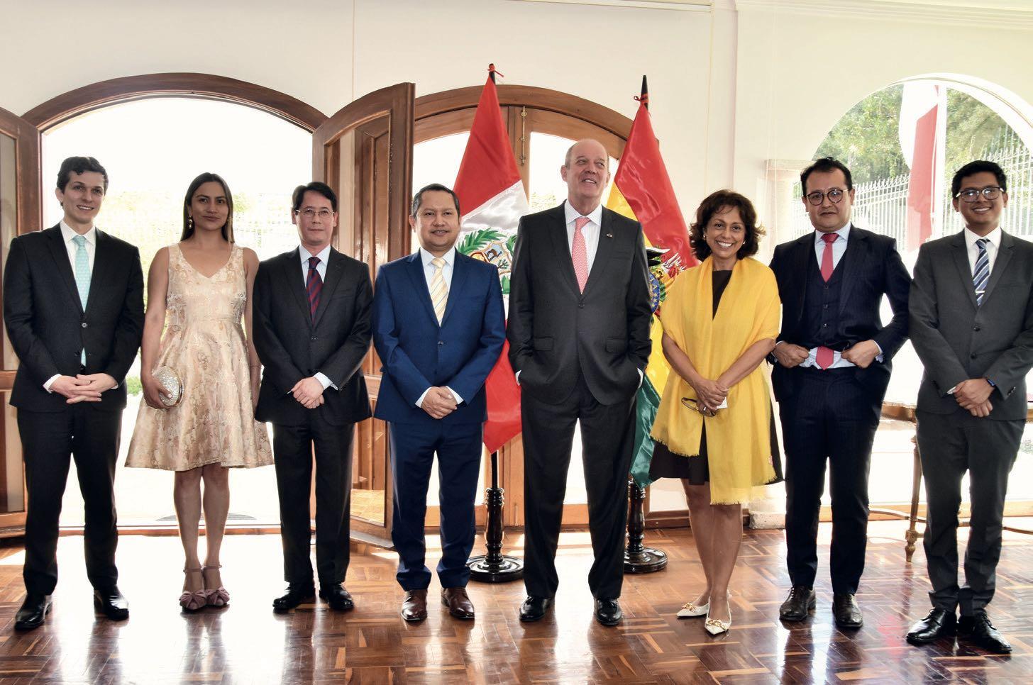 Con motivo de la presentación de sus cartas credenciales, el embajador del Perú en Bolivia, Carlos Daniel Chávez-Taffur Schmidt, ofreció una recepción junto a invitados especiales, miembros del cuerpo diplomático y representantes de Cancillería. En la ocasión, se brindó con pisco sour por el inicio de su nueva misión.