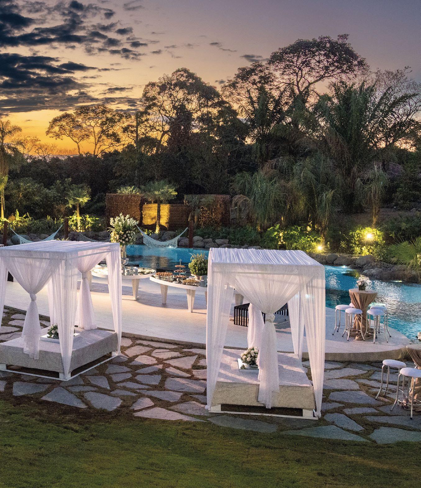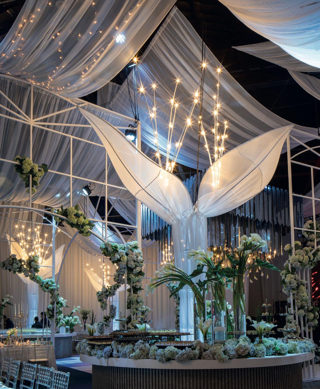La innovación es parte de su sello. Han introducido techos inclinados con iluminación integrada, paredes de gasa que generan ambientes etéreos y propuestas que juegan con la luz natural y artificial para transformar los espacios a lo largo de cada celebración.